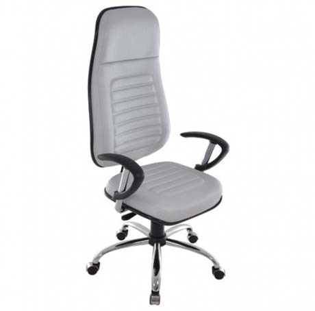 Esta cadeira presidente de encosto alto, acabamento costurado em gomos e pode ser montada com braços fixos ou reguláveis.