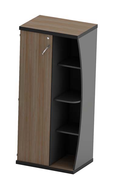 Armário alto com uma porta e um nicho para livros, mídias e decorações – que pode ficar à direita ou à esquerda da porta.