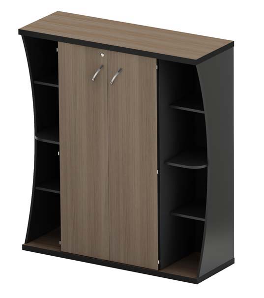 Armário alto com duas portas centrais e dois nichos, um de cada lado