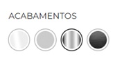 A base em aço pode ter acabamento cromado ou em pintura epóxi pó nas cores preto, branco, cinza.