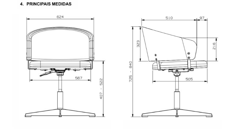 - Estrutura fixa e giratória – máximo conforto para girar para um lado e para o outro pois a poltrona gira sobre o próprio eixo, mas não tem rodízios.