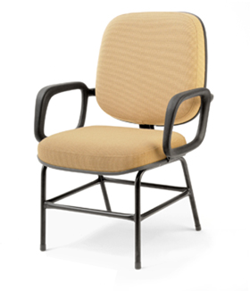 Cadeira para Obeso Lisa, fixa.  Tudo nela é reforçado. Estrutura em aço, estofado, espuma e braços. Suporta até 140 Kg. O acabamento da espuma do estofado pode ser liso ou pode ter gomos de costura.
